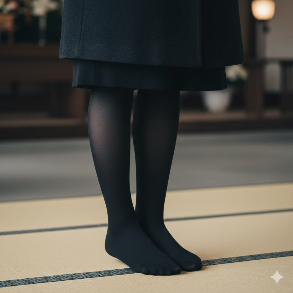 🔹タイツの厚さ: 葬儀では「肌が透ける30デニール以下」が正式とされますが、寒い日は60〜80デニール程度までなら許容されるケースが増えています。