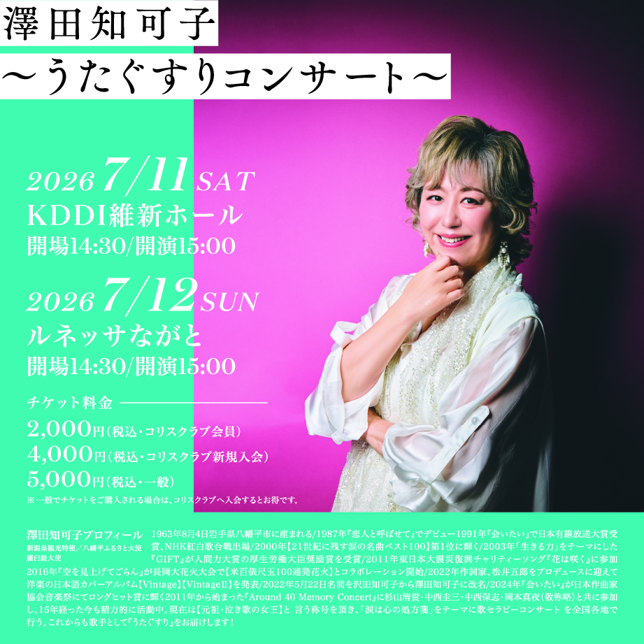 ✨澤田知可子うたぐすりコンサート✨