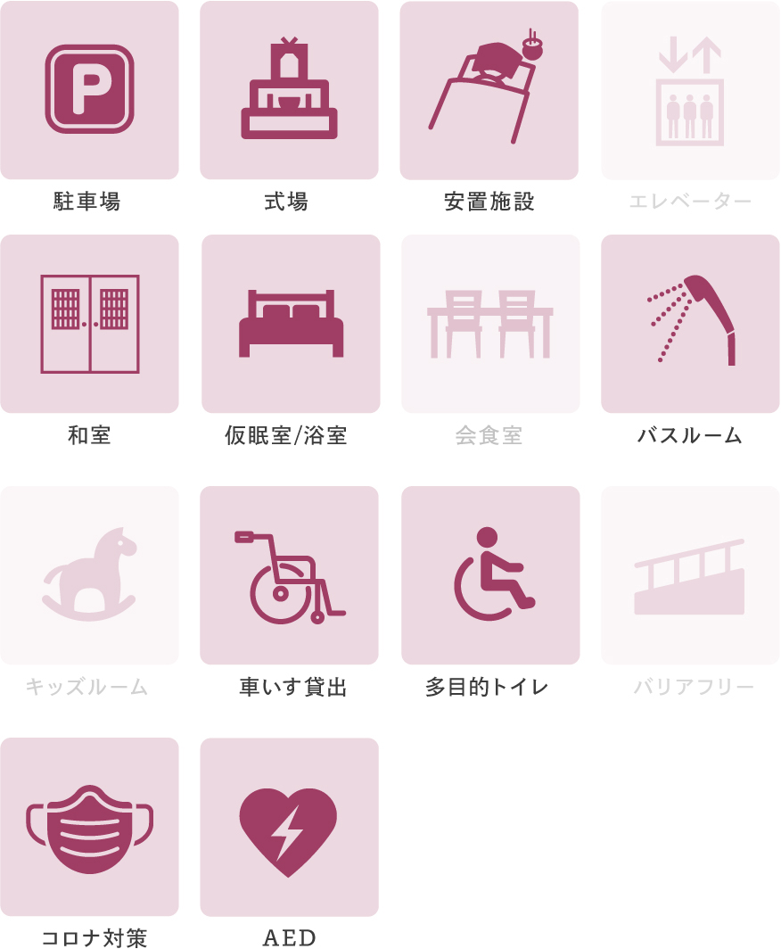 ①式場:会葬者の人数に合わせて15席までご用意可能です。