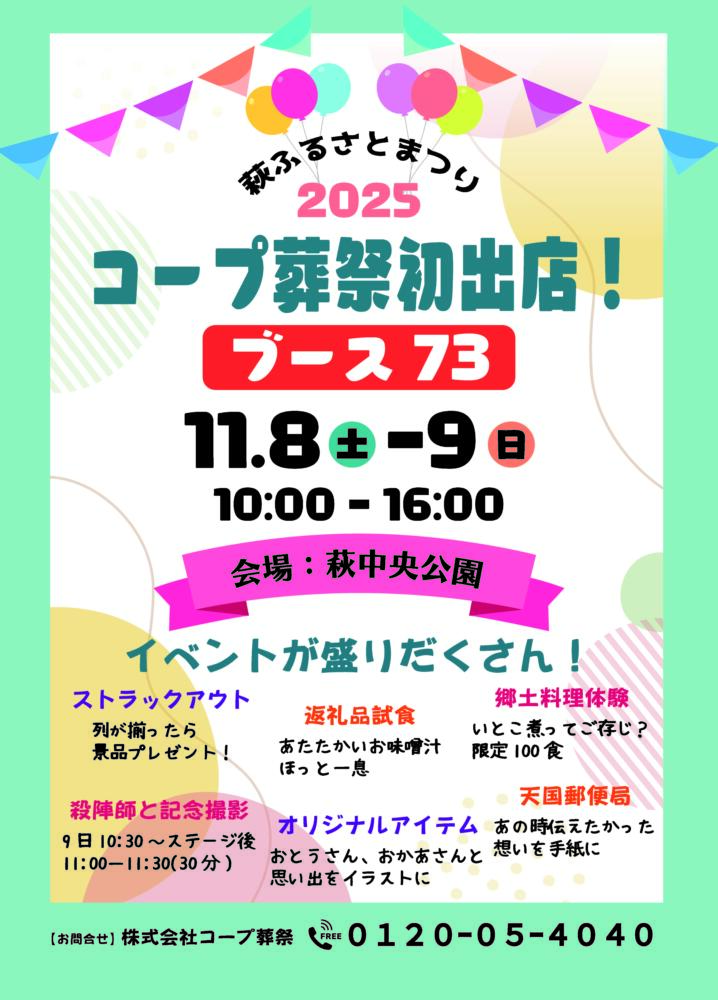 「萩ふるさとまつり2025」 に、コープ葬祭が初めて出店いたします。