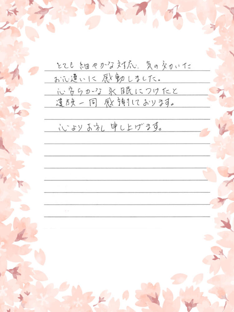とても細やかな対応、気の効いたお心遣いに感動しました。