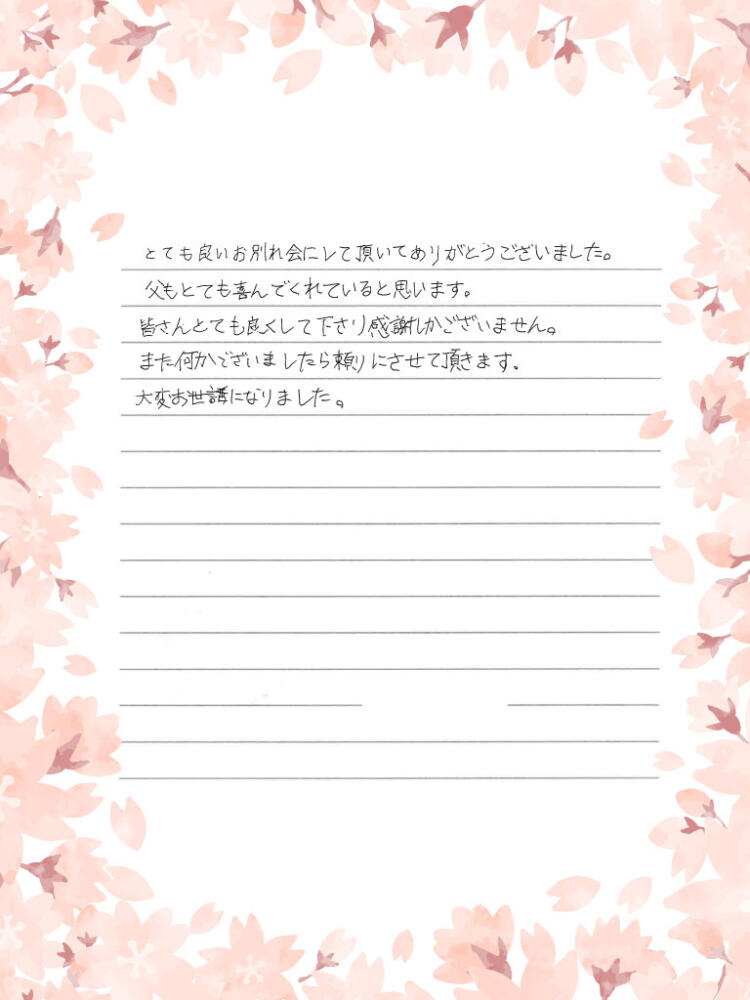 父もとても喜んでくれていると思います。