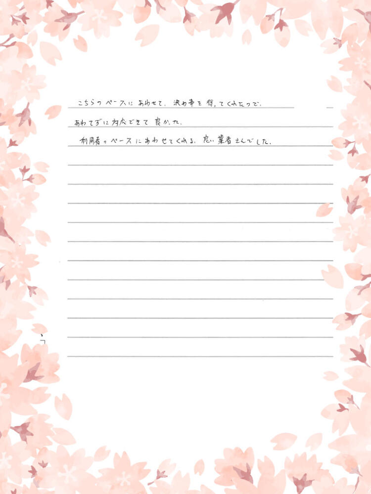 こちらのペースにあわせて、決め事を行ってくれたのであわてずに対応できてよかった。