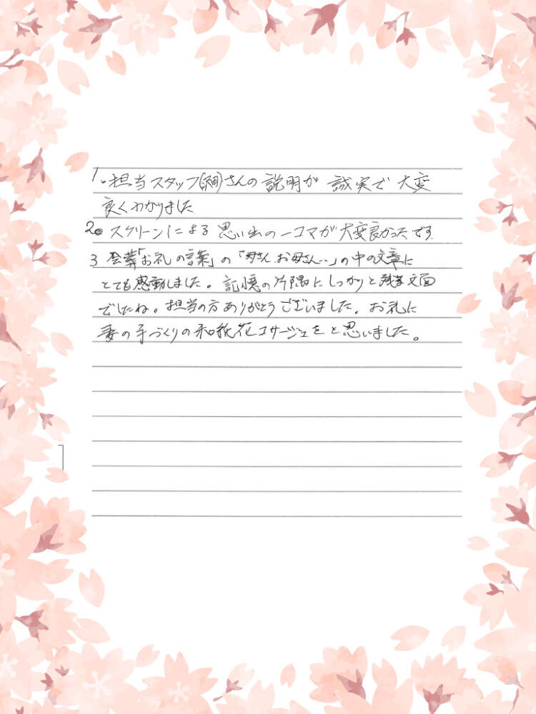 担当の方ありがとうございました。