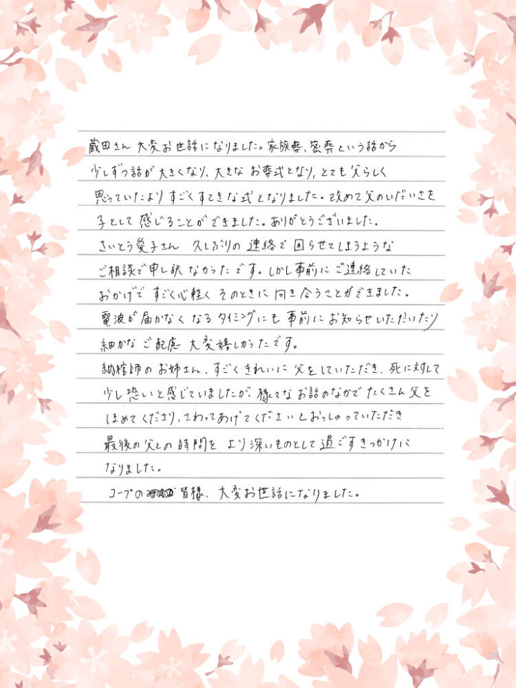 最後の父との時間をより深いものとして過ごすきっかけになりました。