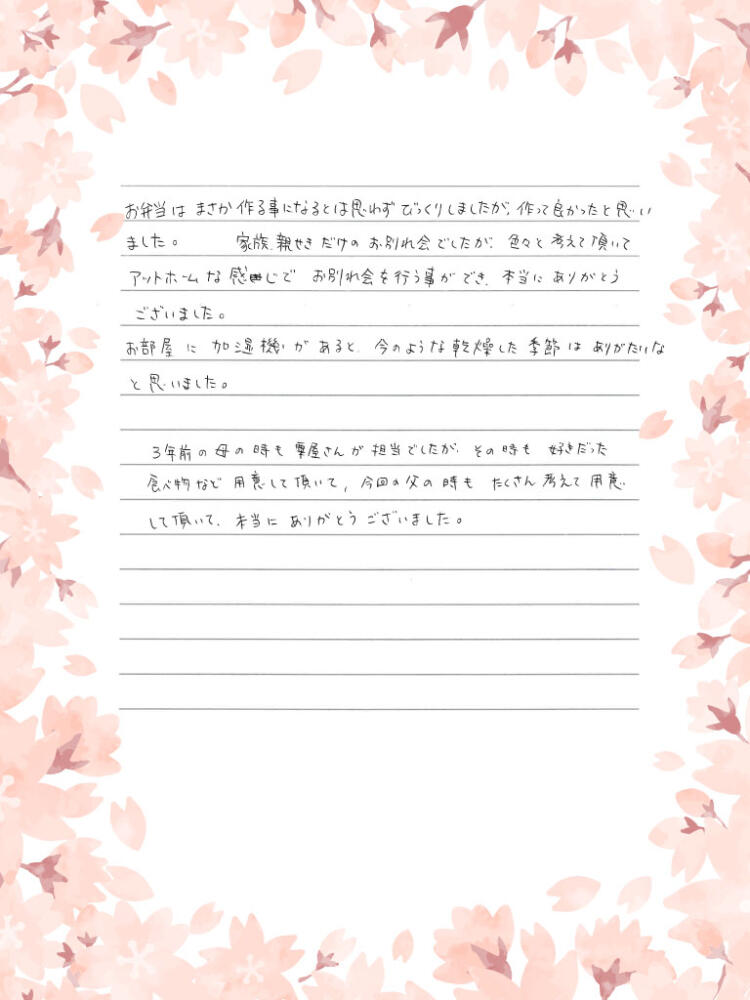 今回の父の時もたくさん考えて用意して頂いて本当にありがとうございました。
