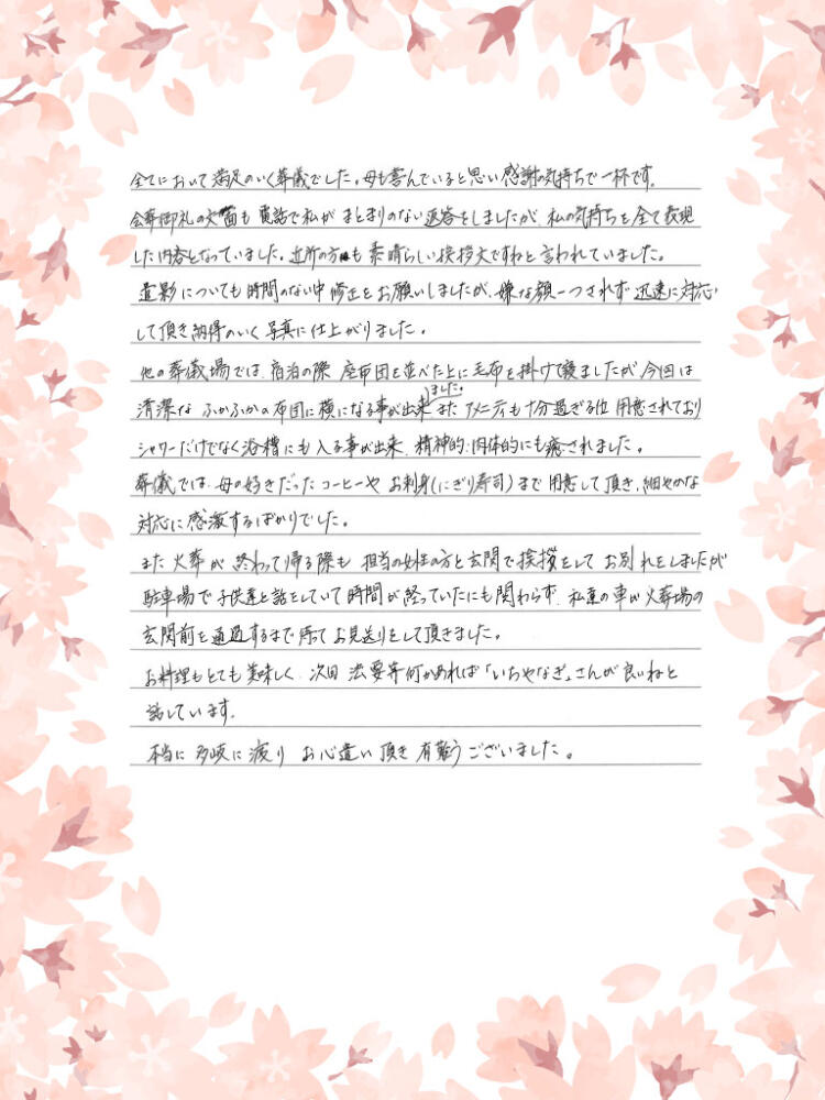 本当に多岐に渡りお心遣い頂き有難うございました。