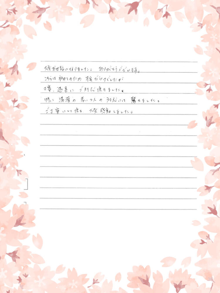 ご丁寧にして頂き大変感動しました。