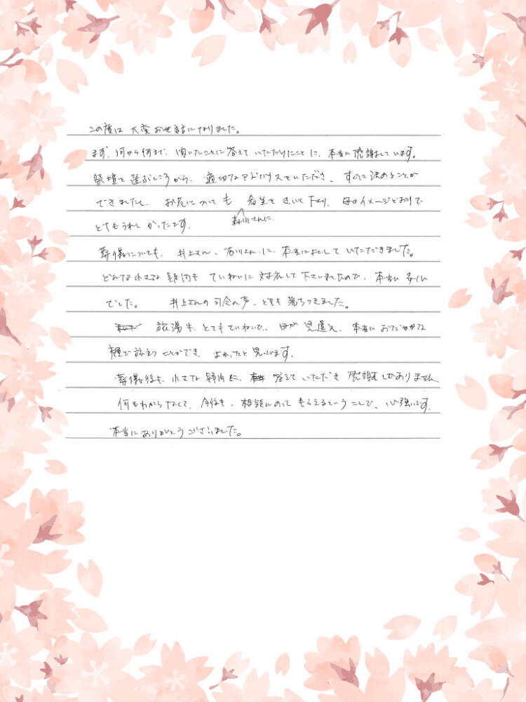 葬儀後も小さな疑問に答えていただき感謝しかありません。