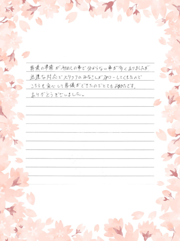 こちらも安心して葬儀ができたのでとてもよかったです。